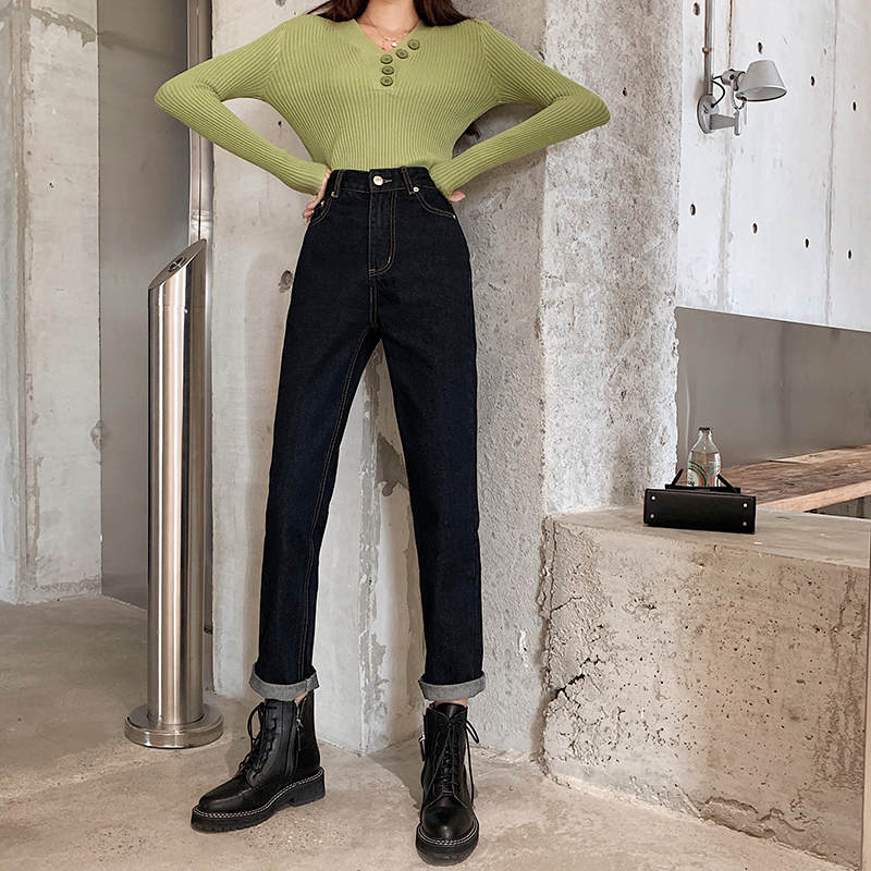Real price! Korean slim loose high waisted jeans casual versatile straight pants female trend