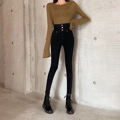 Real price! Korean high waist skinny skinny fleece jeans