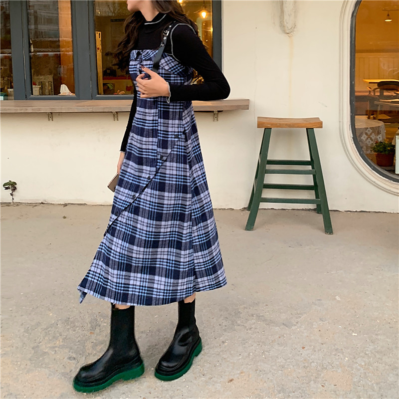 Real price Korean half high diagonal design mid length plaid skirt with black bottom