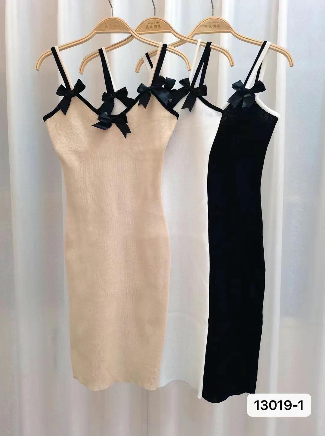蝴蝶结吊带连衣裙女装春秋紧身修身包臀短裙2021新款内搭打底裙子