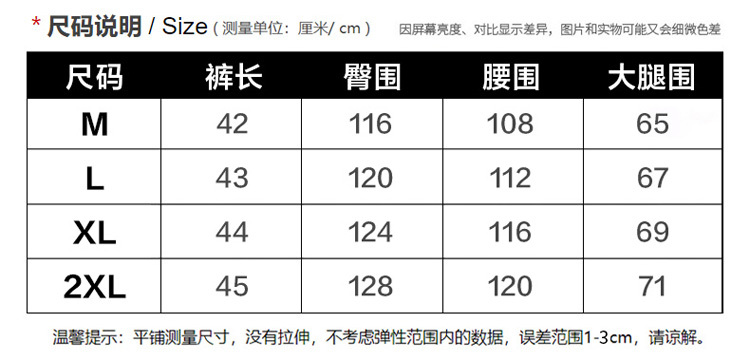 - Panjang: celana pendek