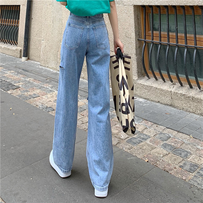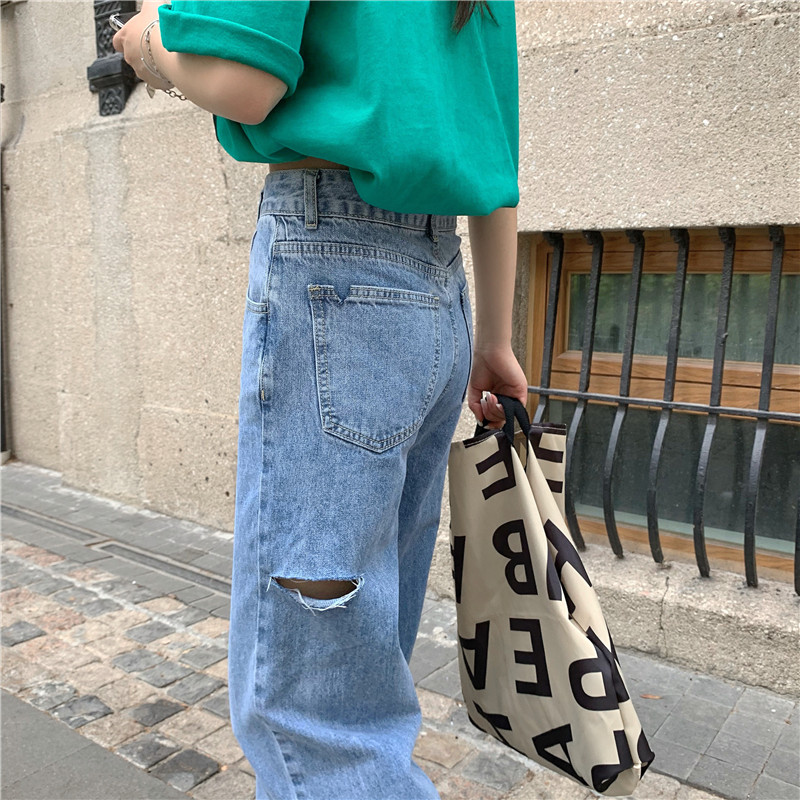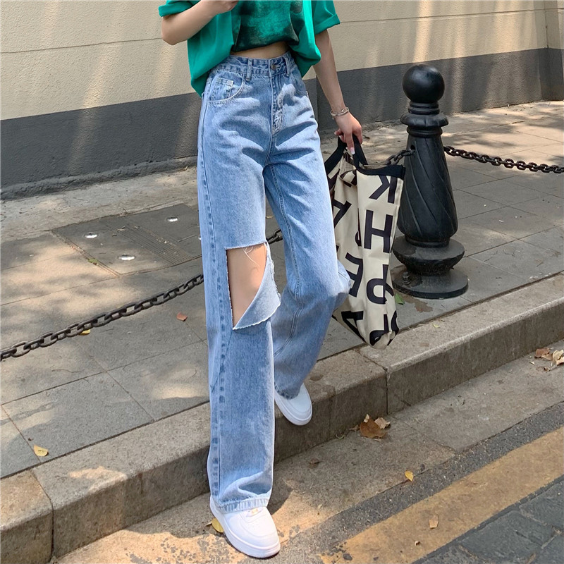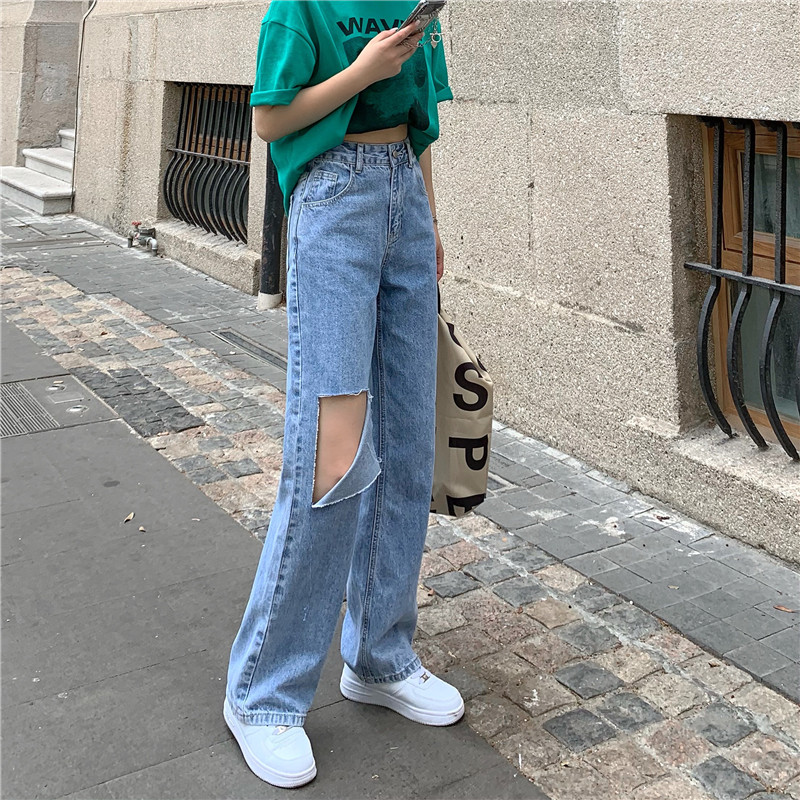 - About chromatic aberration due to the light, there will be slight chromatic aberration ~ ~ ~ bow and salute s: waist 63 arm 90 length 100m: waist 67 arm 94 length 101L: waist 71 arm 98 length 102xl: waist 75 arm 102 Length 103 unit of measurement: cm / cm, manual measurement slightly error, pure normal, not as a return standard, heard a lot of baby new hole jeans Oh! This is also a wide leg pants that I really like. It's designed with holes on one knee. The color is fresh in spring and summer! Let the person see immediately want to wear on the body, did not try the hole pants sister to try Oh, the upper body effect is very different, you will immediately fall in love with!