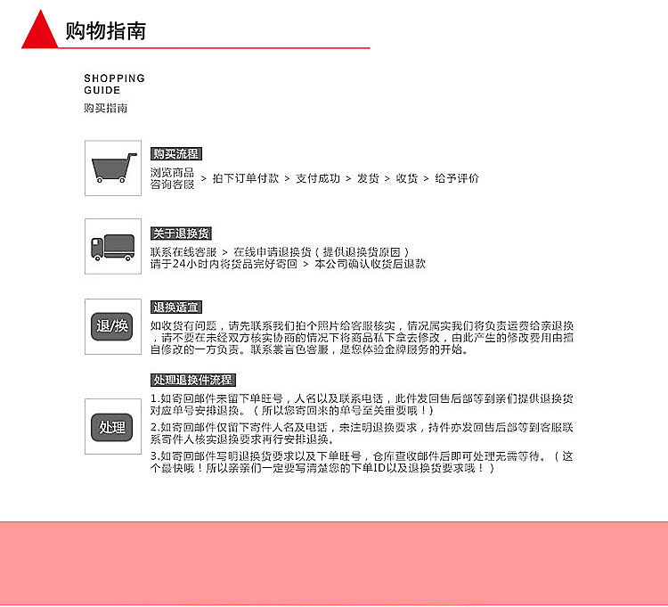 Within 15 days from the date of receipt, the goods can be returned to customers without reason. The goods of the store shall be returned with the consent of the merchant.