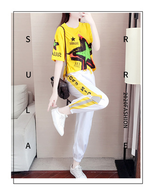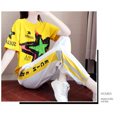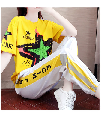 Sportswear women's summer 2021 new fashion fashion fashion relaxed Korean version slim leisure two piece set summer