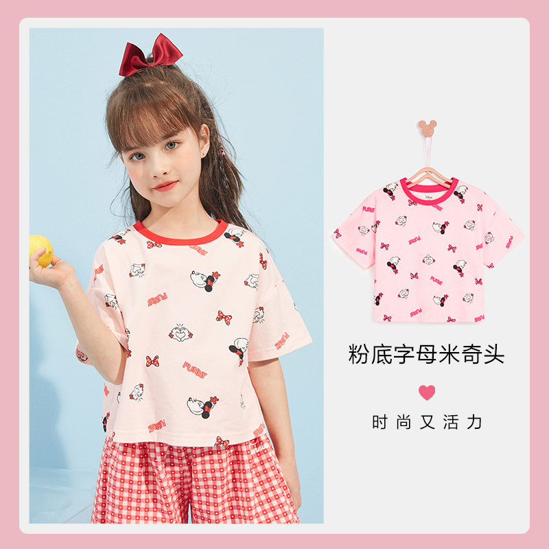 Disney girls' short sleeve T-shirt cotton baby half sleeve summer clothes children's clothes girls' top net red T-shirt summer