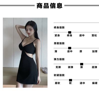 Real shot! Hot girl style classic black hollowed out fake two piece design sense waist strap A-line sexy dress female