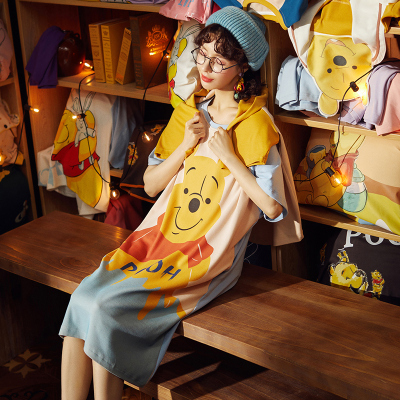 Disney Co branded nightdress women's summer pure cotton thin size short sleeve pajamas sweet lovely girls' home clothes