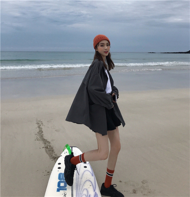 Women's baggy opening season outerwear jacket Baseball Jacket Top ins spring and autumn Korean version student trend