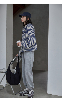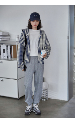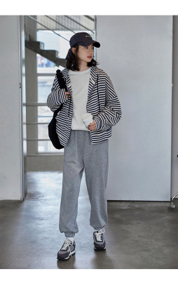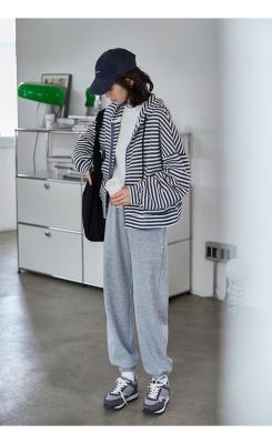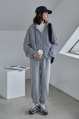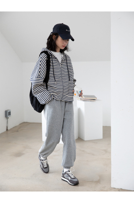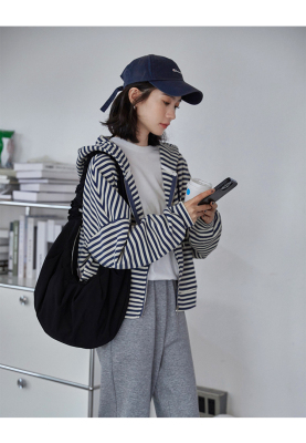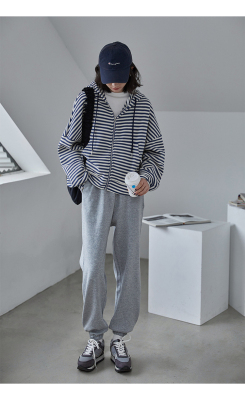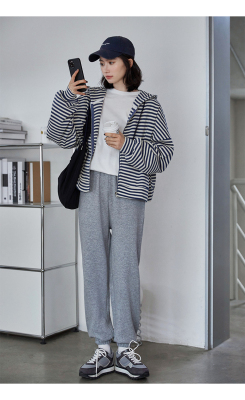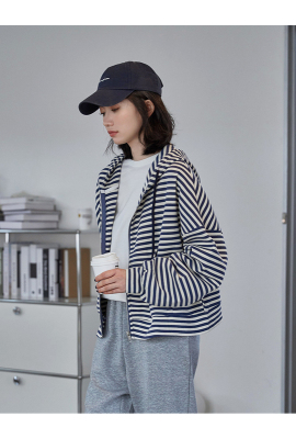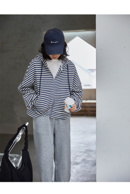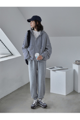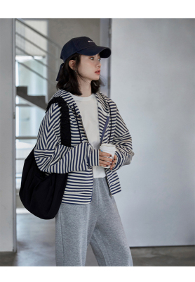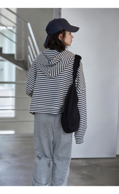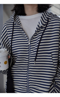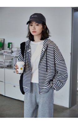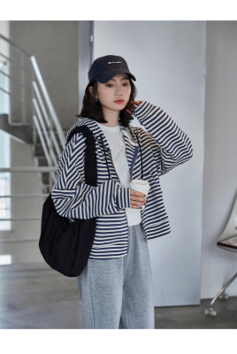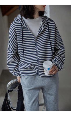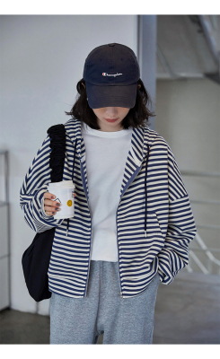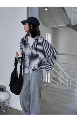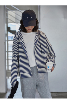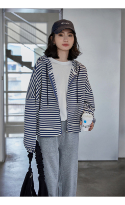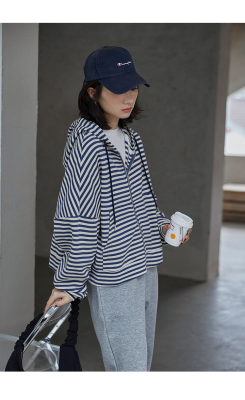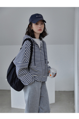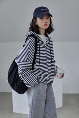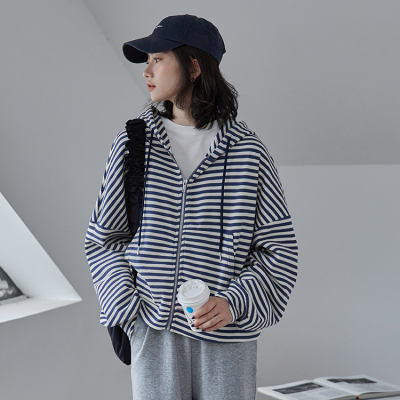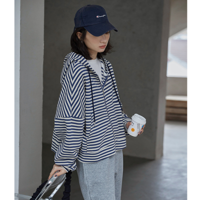 Real shot striped hooded sweater for women 2021 new spring versatile Korean loose long sleeve top