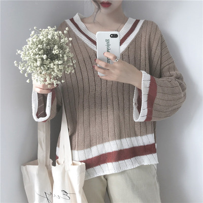 Practical Shot ~Early Autumn Recommendation of Simple Chic Wind Colour V-Collar Slender Long Sleeve Knitted Sweaters