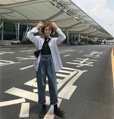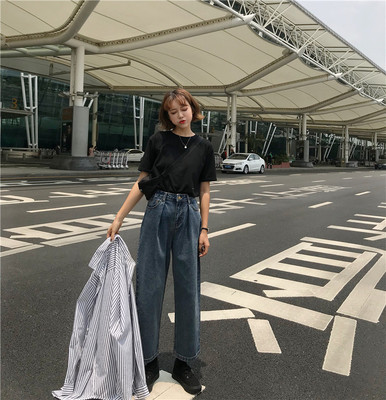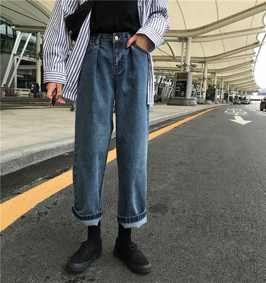 Autumn 2018 New Korean Retro High-waisted Slim Straight Cylinder Jeans Nine-minute Girls