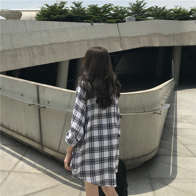 Tested ~New Korean Version Loose Baitao Medium-long Retro Checker Shirt Coat