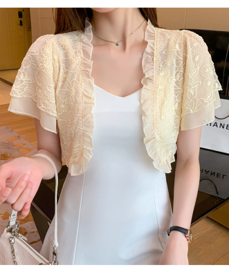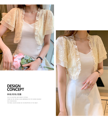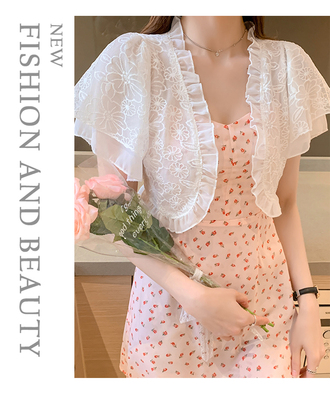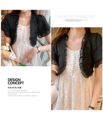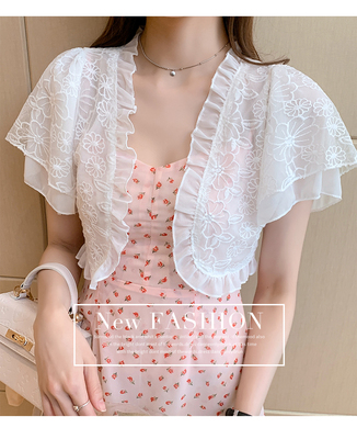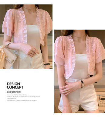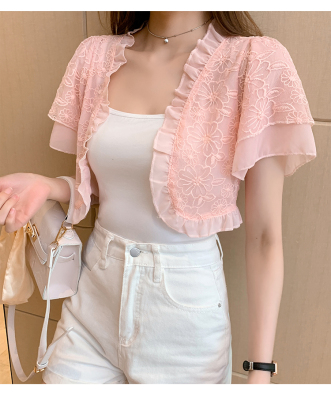 Lace-cut short-sleeved cardigan, small shawl, small shoulder, Xia Baitao, thin summer jacket, 2018