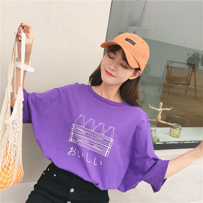 Korean version of loose-fitting student's short-sleeved Purple Print T-shirt for women 2019 new original summer jacket ulzzang