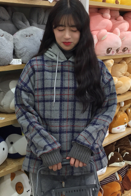 Real-time wool collar lattice stitching false two high collar thicker pullover, women's bathroom cap, autumn and winter harbor wind