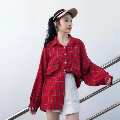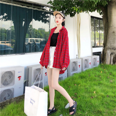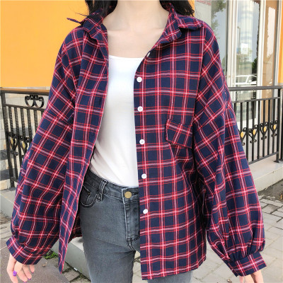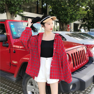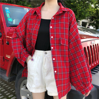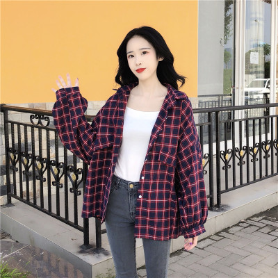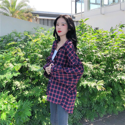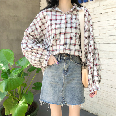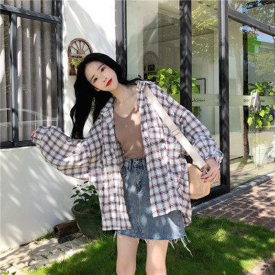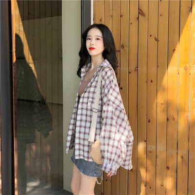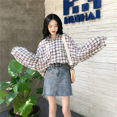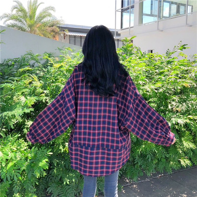 Real-price new Korean Baitachic loose checked long-sleeved Lapel shirt jacket