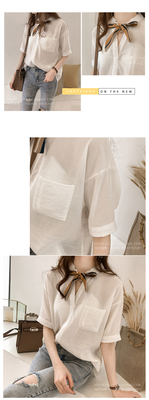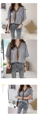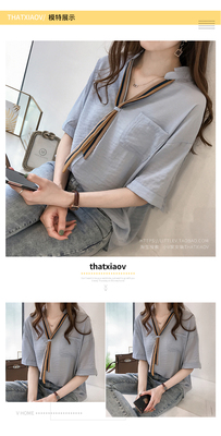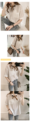 New fashionable striped tie shirt, short sleeve blouse, loose half sleeve shirt