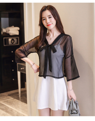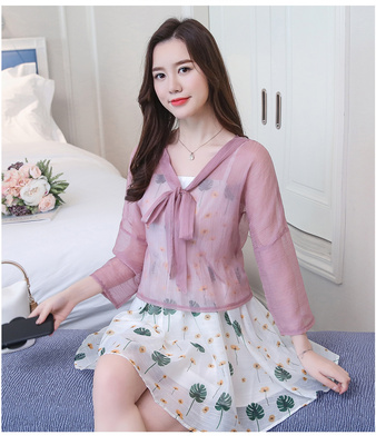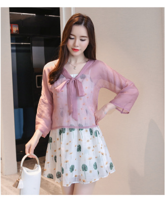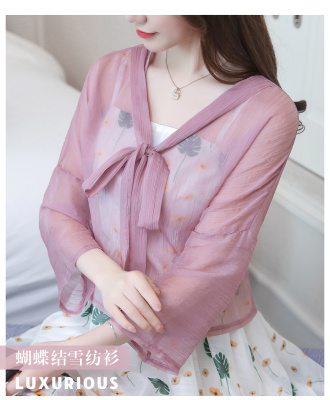Summer 2019 thin jacket, short sleeve jacket, Chiffon jacket, short shawl, air conditioned strip shirt
