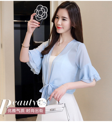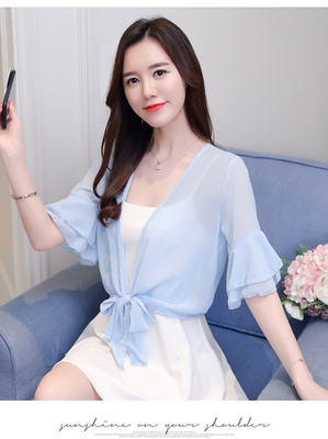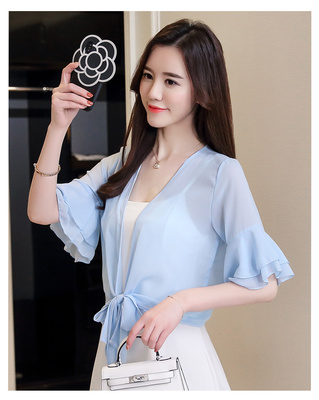 Summer 2019 thin shawl short jacket sunscreen jacket for women 100 sets of short cantilever Chiffon cardigan air conditioning shirt