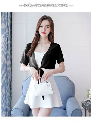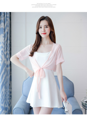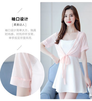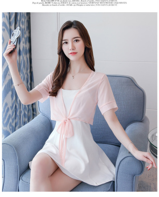Summer 2019 thin jacket, short sleeve, small shoulder jacket, Chiffon jacket, short shawl air conditioning strip shirt
