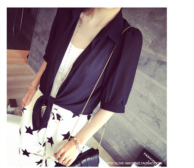 Summer 2019 thin tie shawl jacket, sunscreen jacket, short shoulder chiffon cardigan