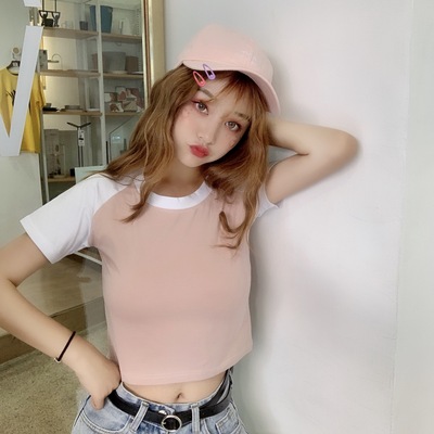 Real-price Korean version stitching, shaping, slimming and short sleeve T-shirt