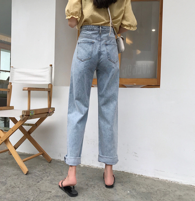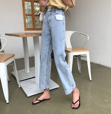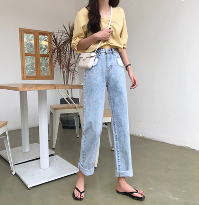 Real-price summer new Panya with high waist, straight barrel, wide legs and loose CEC student BF pants