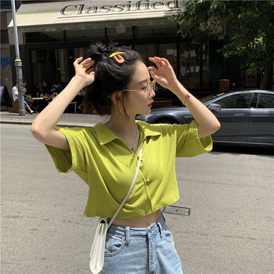Korean version of pure color, loose and short Polo collar, short sleeve T-shirt