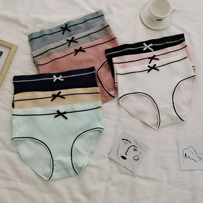 Real-price Korean version of chic small fresh bowknot comfortable triangular underwear suit for three women