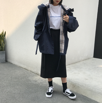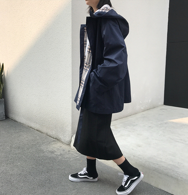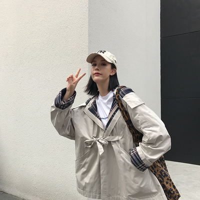 Real-price new chic coat windbreaker medium-long cold women's wear Hong Kong style relaxed handsome BF