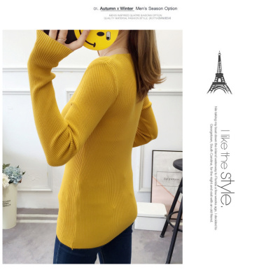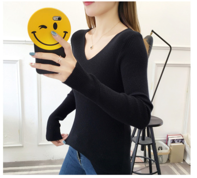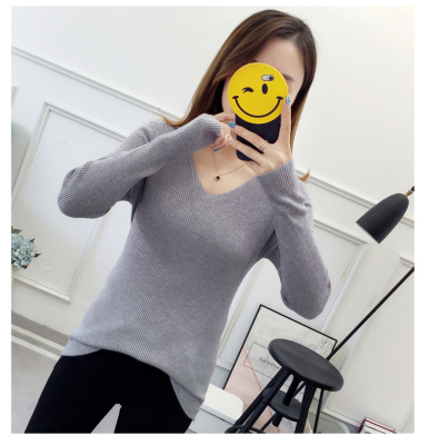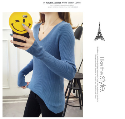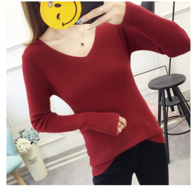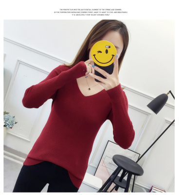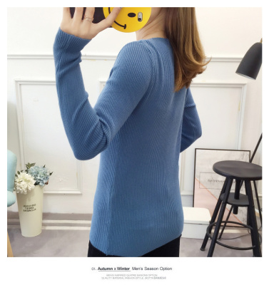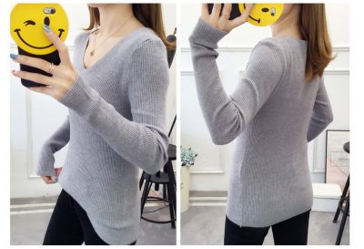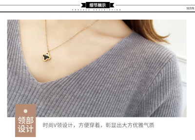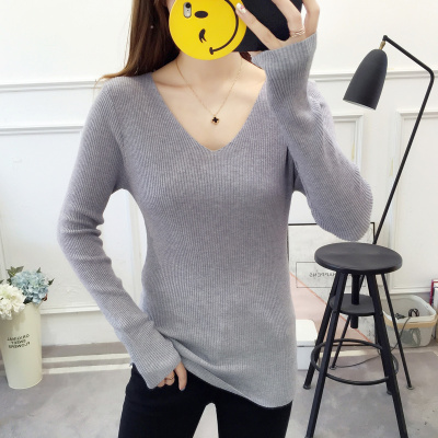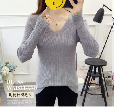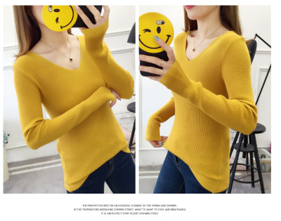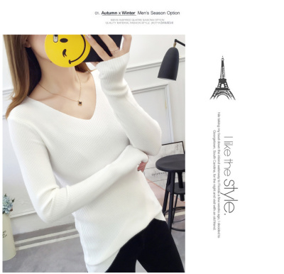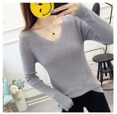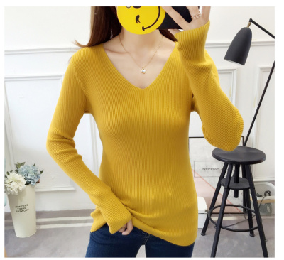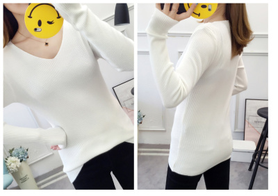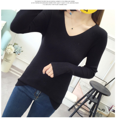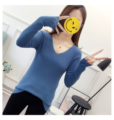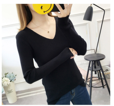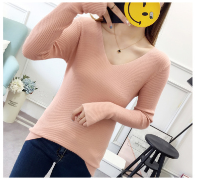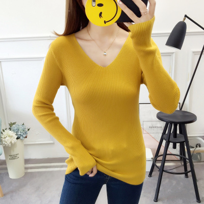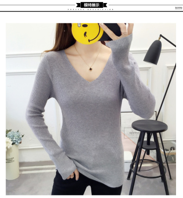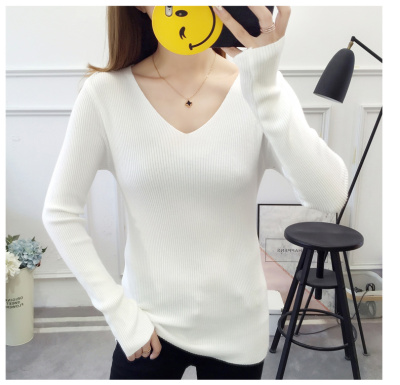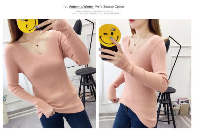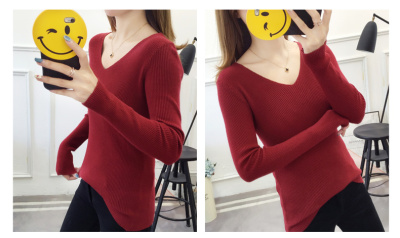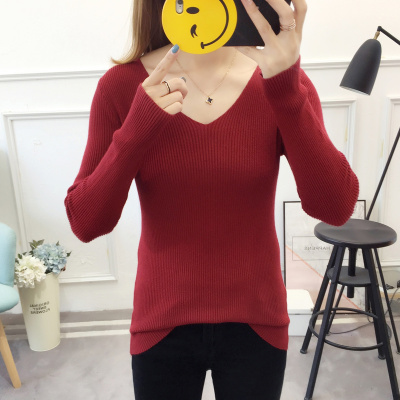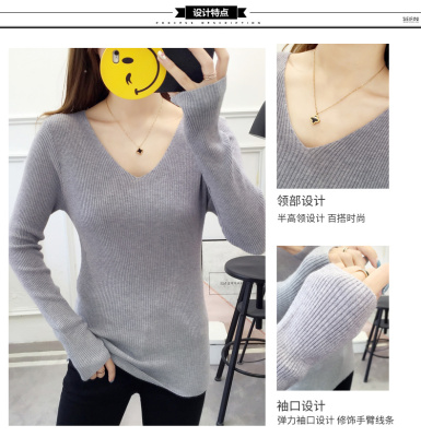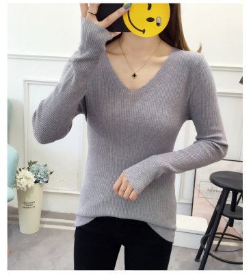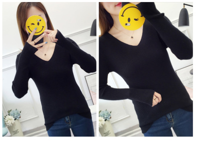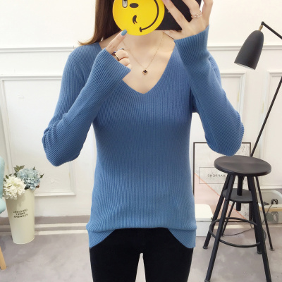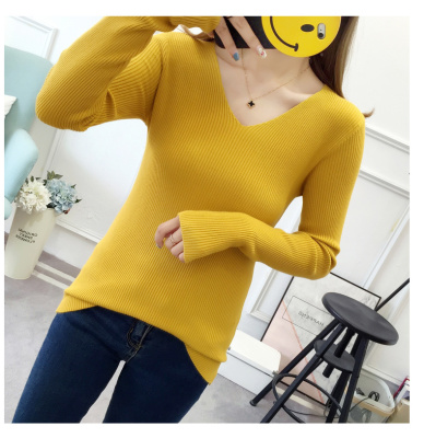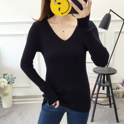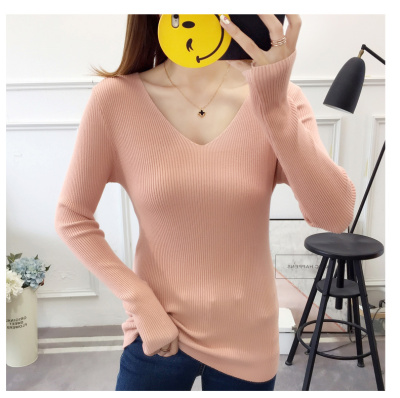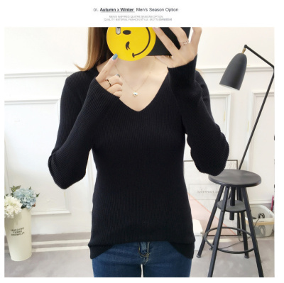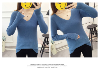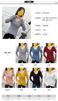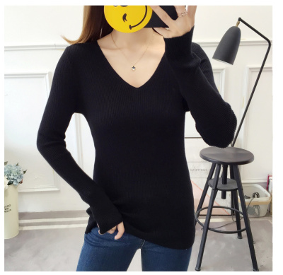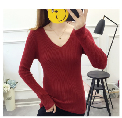 Real-time ~autumn and winter clothes base 100 sets of pure-color V-collar skinny knitted soft core-spun yarn jacket bottom shirt
