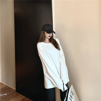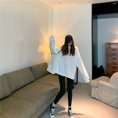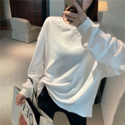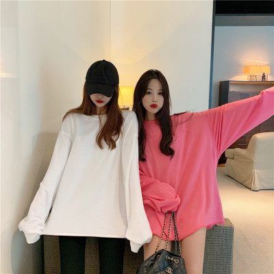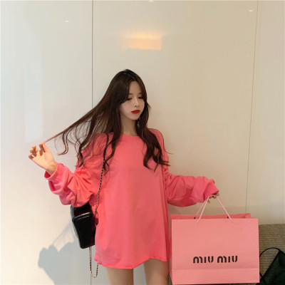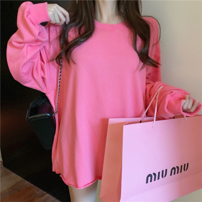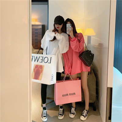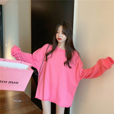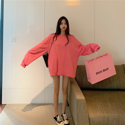 Real-time pink sanitary dress women's loose autumn dress Korean version long-sleeved large-size pure-color Pullover Jacket