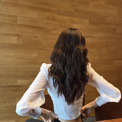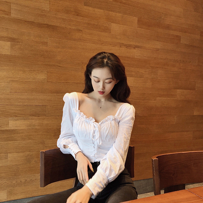 Real-price autumn white long-sleeved light-ripe foam sleeve retro-style collar slim shirt
