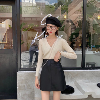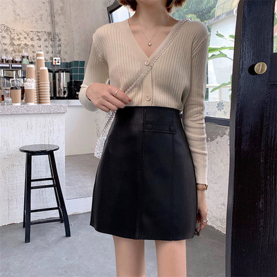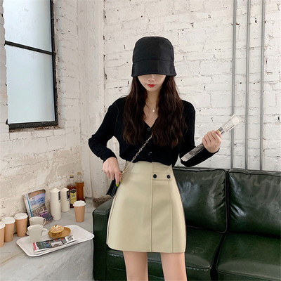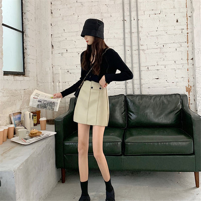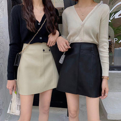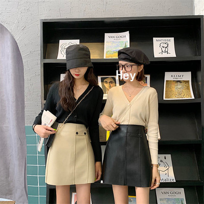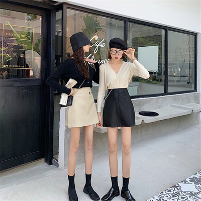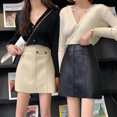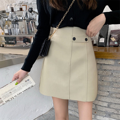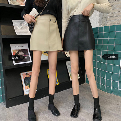 Real-price Korean version of loose Hong Kong flavor retro net red handsome PU leather skirt high waist half-length skirt