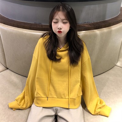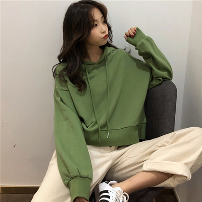 65 Fish Scale 2019 New Korean Edition Autumn and Winter Short Bare Navel and Hat Guard for Female Pure Color Students