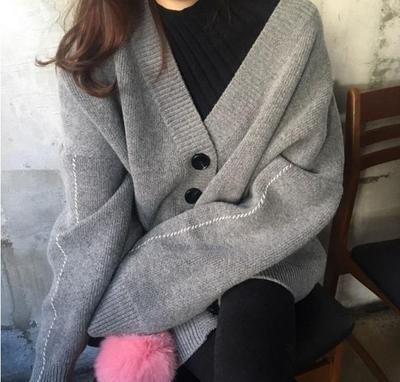 Thickened jacket Korean version loose and lazy knitted cardigan V-Neck Sweater