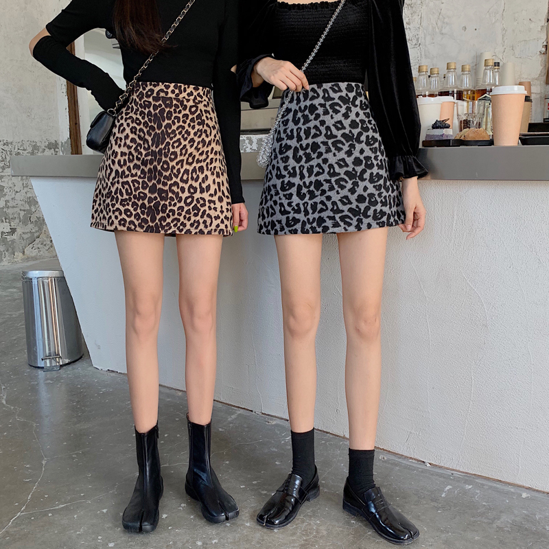 Actual high-waist leopard print half-length skirt for women in autumn and winter
