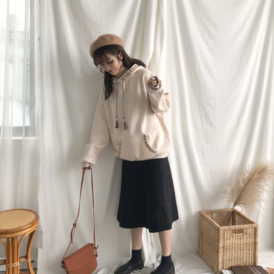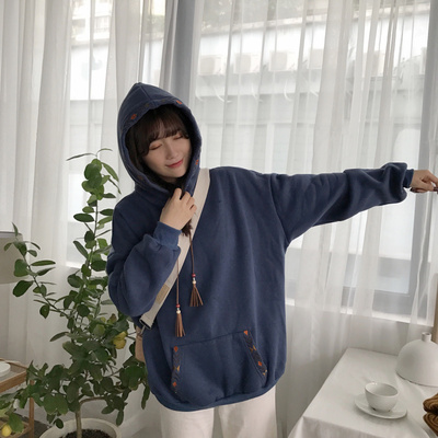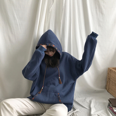 Real Price of Hat Embroidered Drawstring and Fleece Loose Kangaroo Jacket in Autumn and Winter Korean Edition