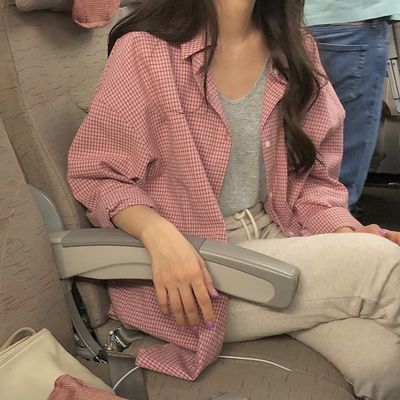 Quality Inspection Korean Chic Autumn Fashion Loose Plaid Long Sleeve Shirt Women's Opener Thin Coat