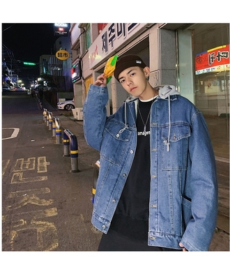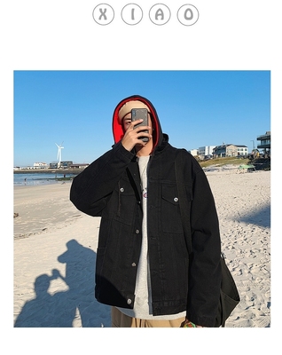 Autumn and winter new plush denim jacket coat men's cotton padded jacket
