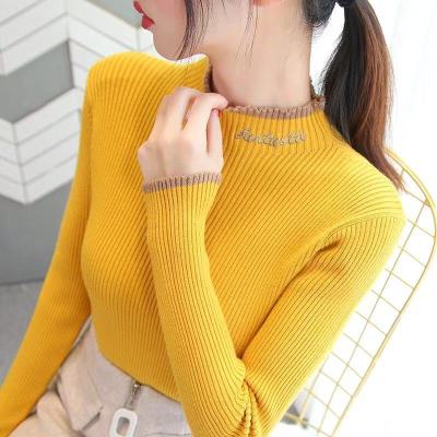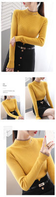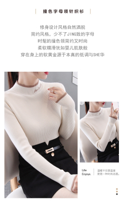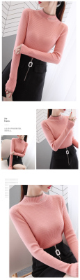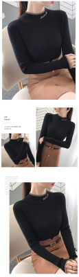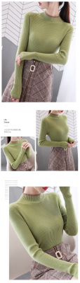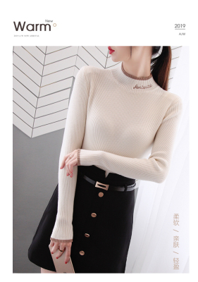 Half high neck sweater underpainting blouse women's 2019 westernized autumn and winter new style built in slim and thickened knitwear long sleeve top