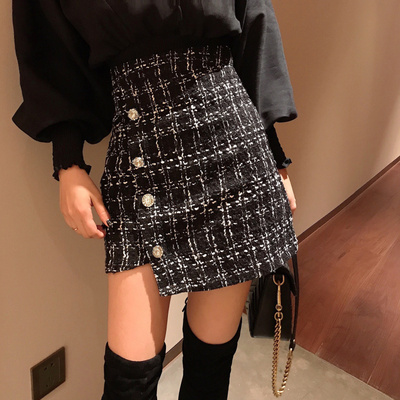 Angry push new celebrity temperament small fragrance Plaid bag skirt irregular word skirt real picture