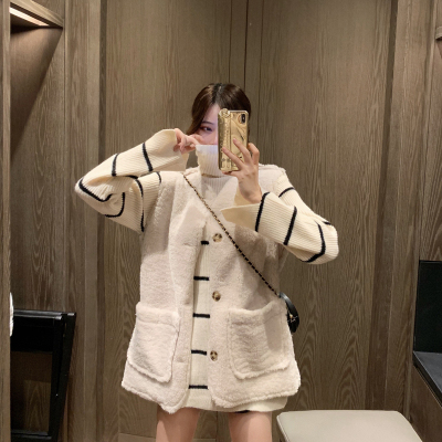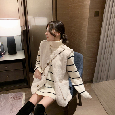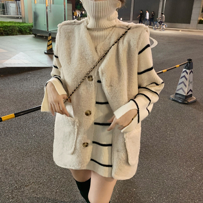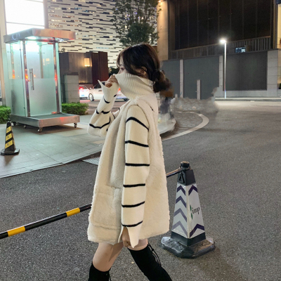Real photo real price control yuan high neck sweater women's loose outside wearing lambhair coat women's fur one-piece vest