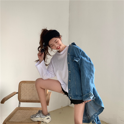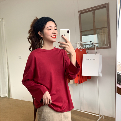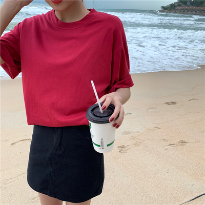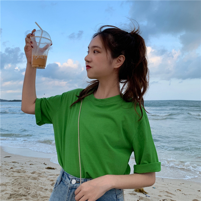 Real shot solid color short sleeve T-shirt women's spring and summer 2019 new style with Korean version loose bottoming top trend
