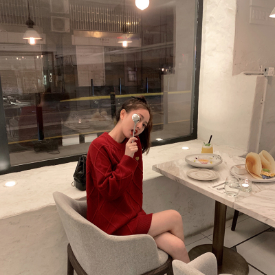 Rouwan 191004 sweetheart girl love embroidery diamond pattern long wool dress / 4 colors