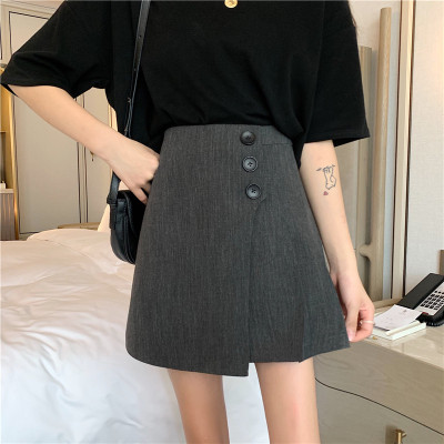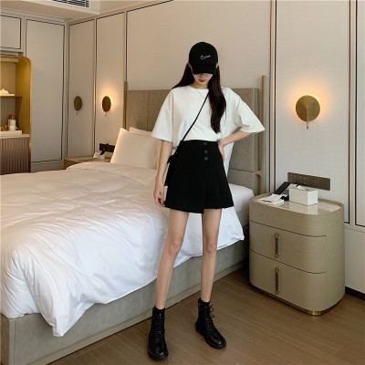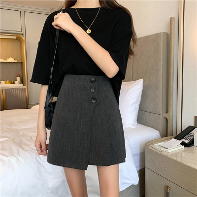 Real photo real price new Hong Kong style word skirt high waist pleated skirt short skirt women's black irregular skirt