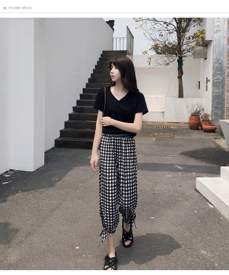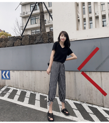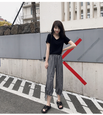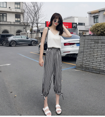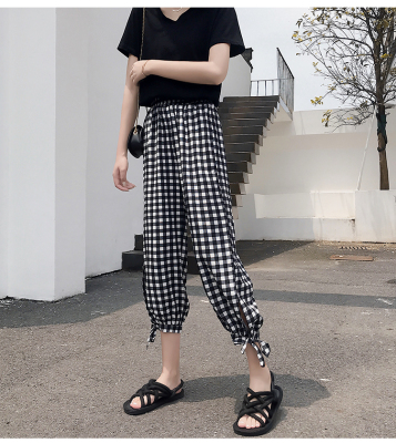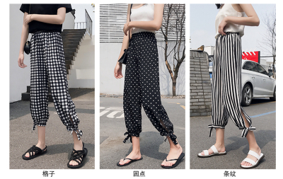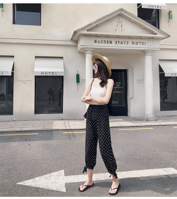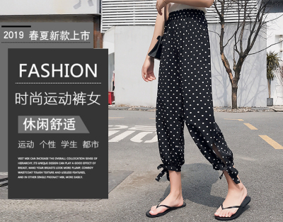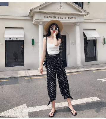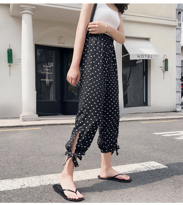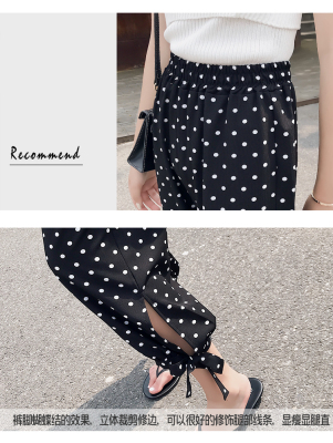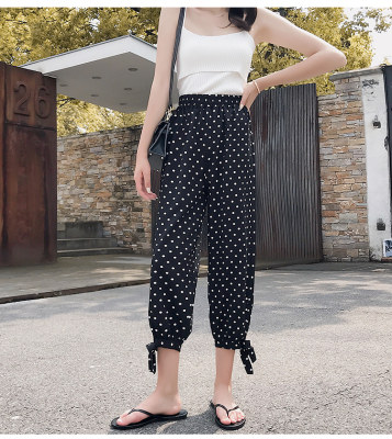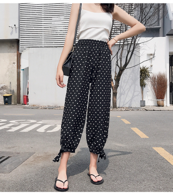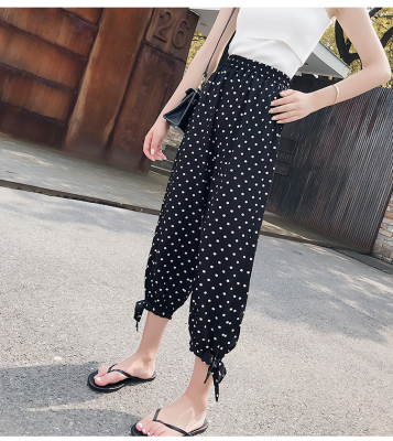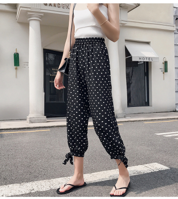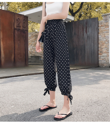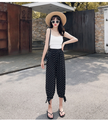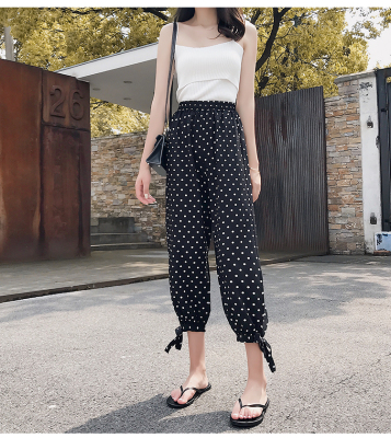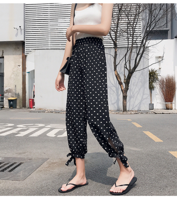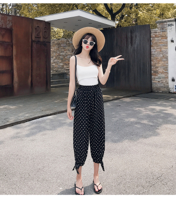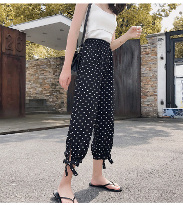 Real photo ~ summer dress lantern pants women's loose, thin, wave point, wide leg, all kinds of thin Chiffon casual Capris