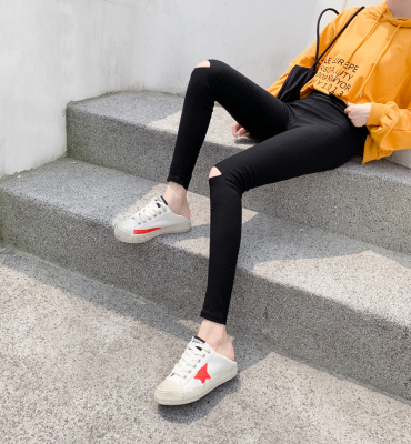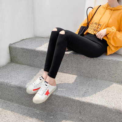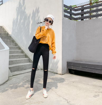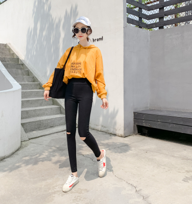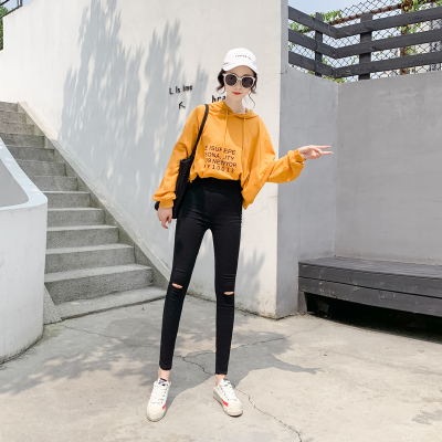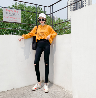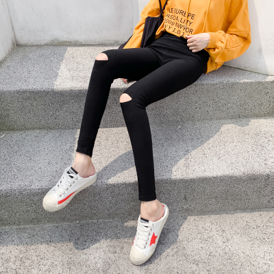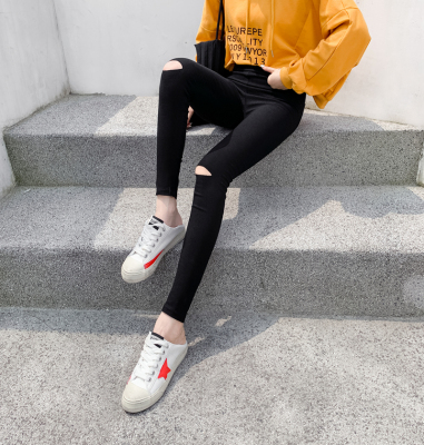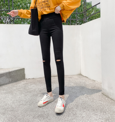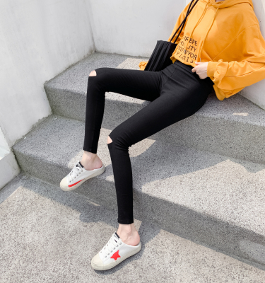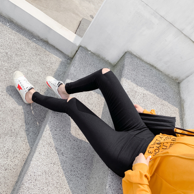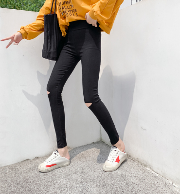 Real photo spring summer new black broken pencil pants Korean version show thin and tight little feet beggar PANTS LEGGINGS