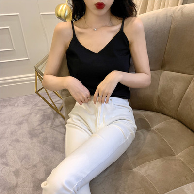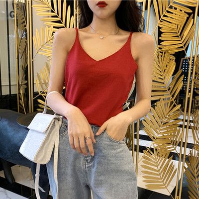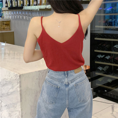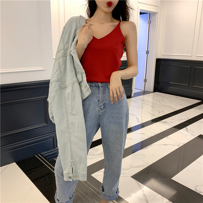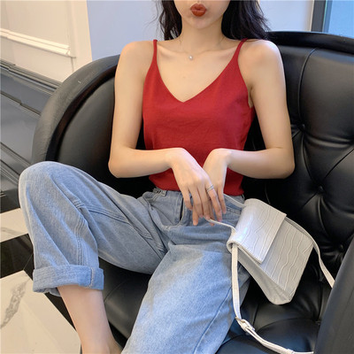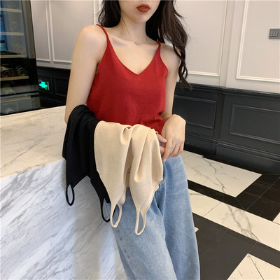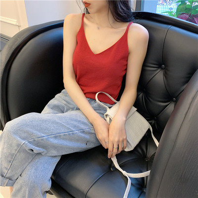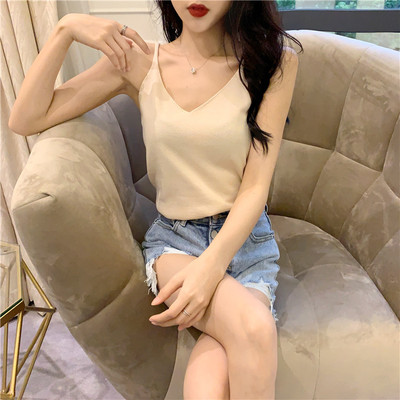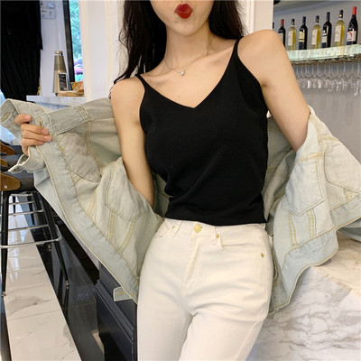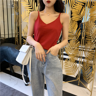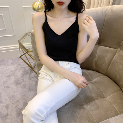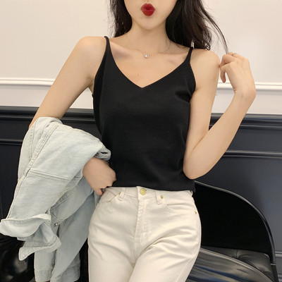 Real photo real price spring Korean version collar knitting suspender vest versatile thin bottomed top female