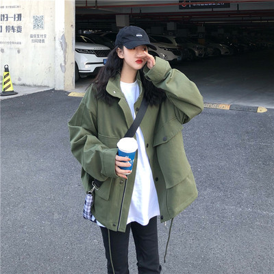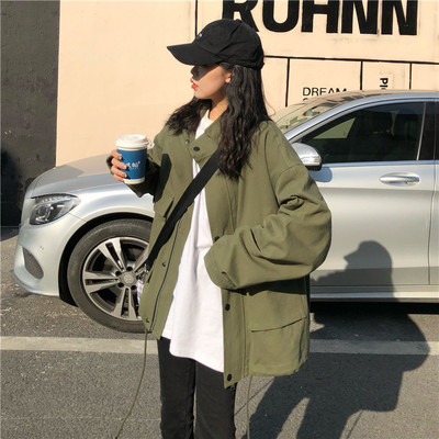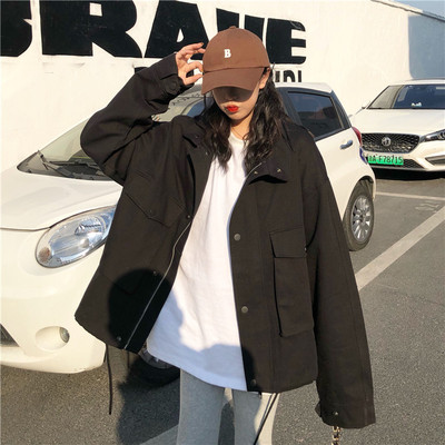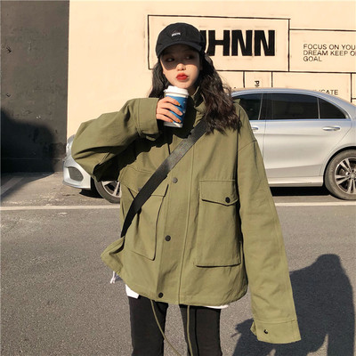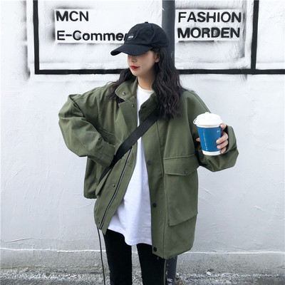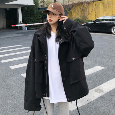 Live shooting spring loose casual jacket Korean work clothes and long sleeve trench coat